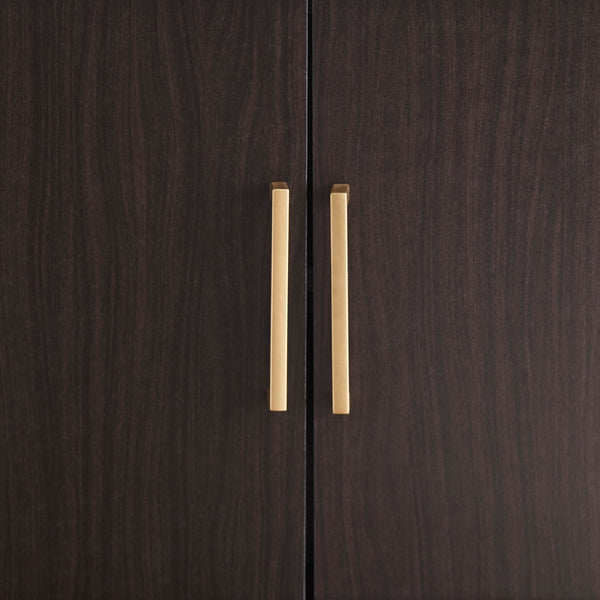 Open the door to clean-lined form and functionality with this accent cabinet. Its rich dark brown finish is enhanced with goldtone door pulls. Adjustable shelf caters to your needs.