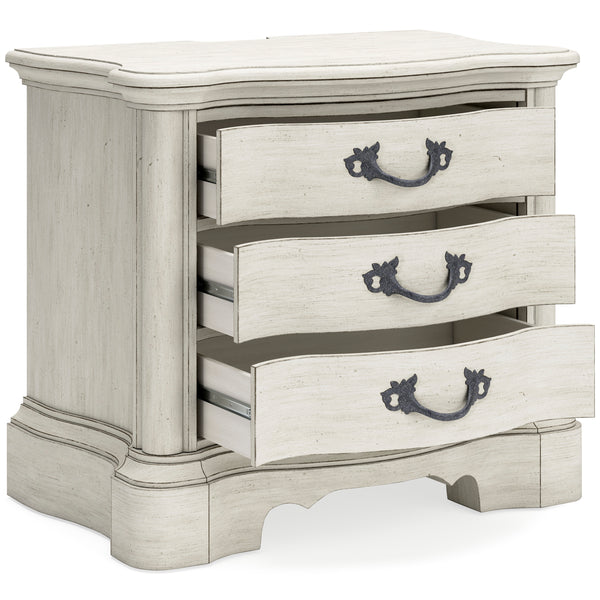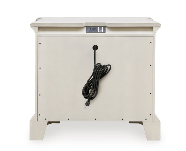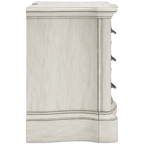 Add a touch of romance to your bedroom with this nightstand. Its antiqued white painted finish and serpentine-shaped silhouette are the definition of easy elegance. The nightstand's three spacious drawers accommodate bedside essentials, while an integrated power outlet and USB charging keep up with your high-tech lifestyle.