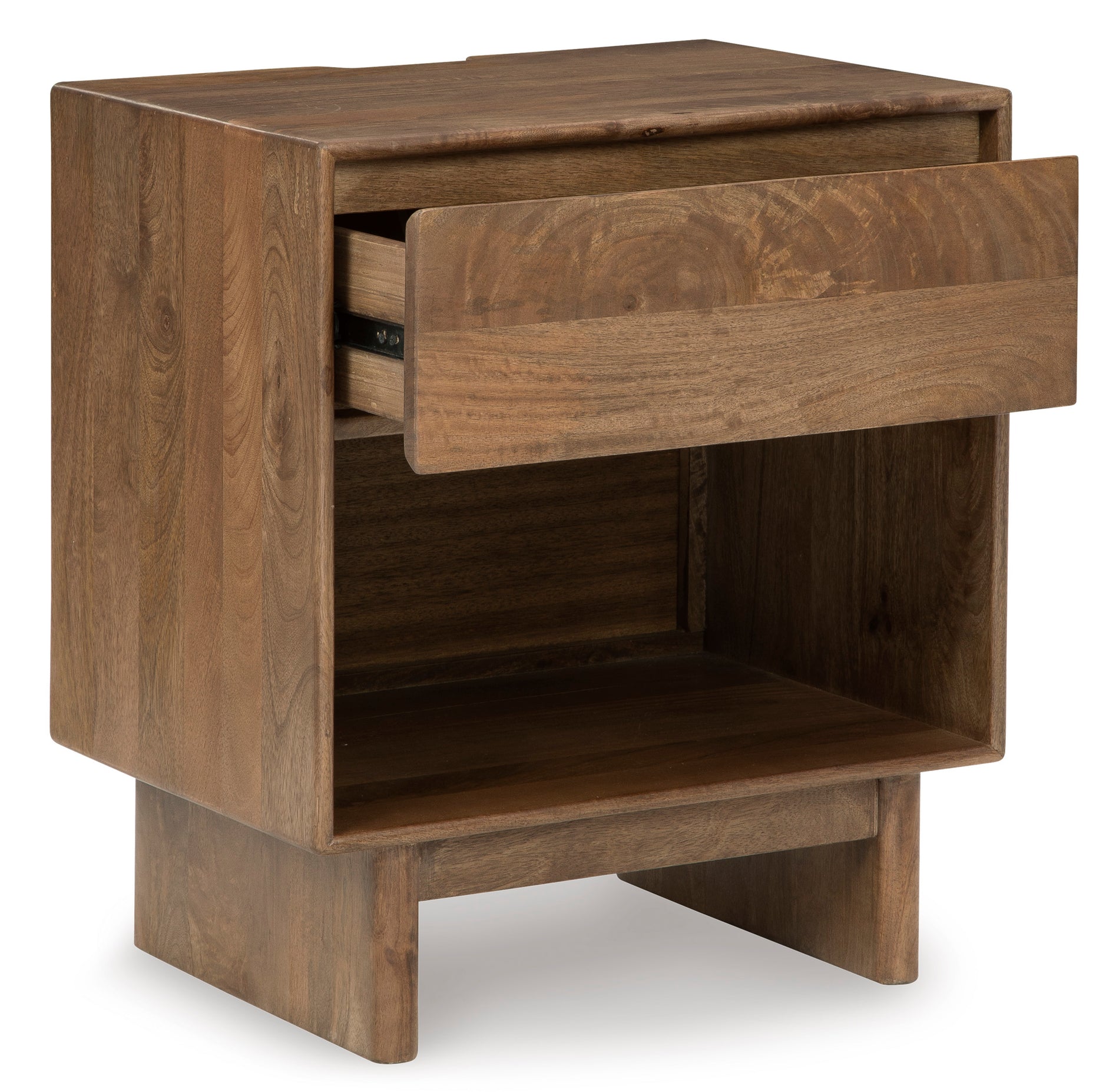 With its back-to-nature sensibility, this nightstand is a natural fit for outfitting your peaceful sanctuary. A clean-lined design lets the beautifully organic quality and inherent luster of the mango wood shine through. From its smooth “hardware-less” drawer to the refreshing light finish, it’s a piece sure to make a statement in your naturally beautiful home. Rest assured, with a built-in power supply and dual USB ports conveniently located along the back edge of the top, this nightstand has your charging needs covered.