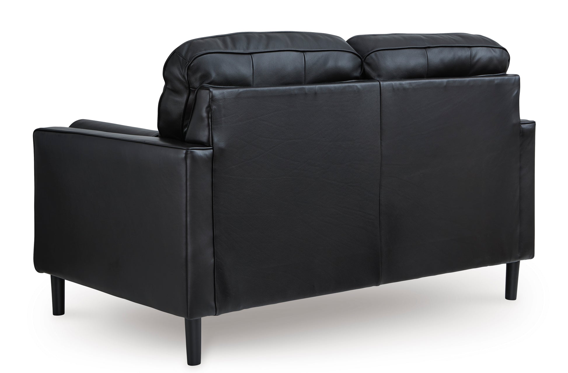 • This loveseat embodies timeless mid-century elegance with its linear design, sleek track arms and tapered legs. Skillfully matched leather and faux leather upholstery adds a luxurious touch to the overall look. Experience endless style opportunities for today's living spaces.