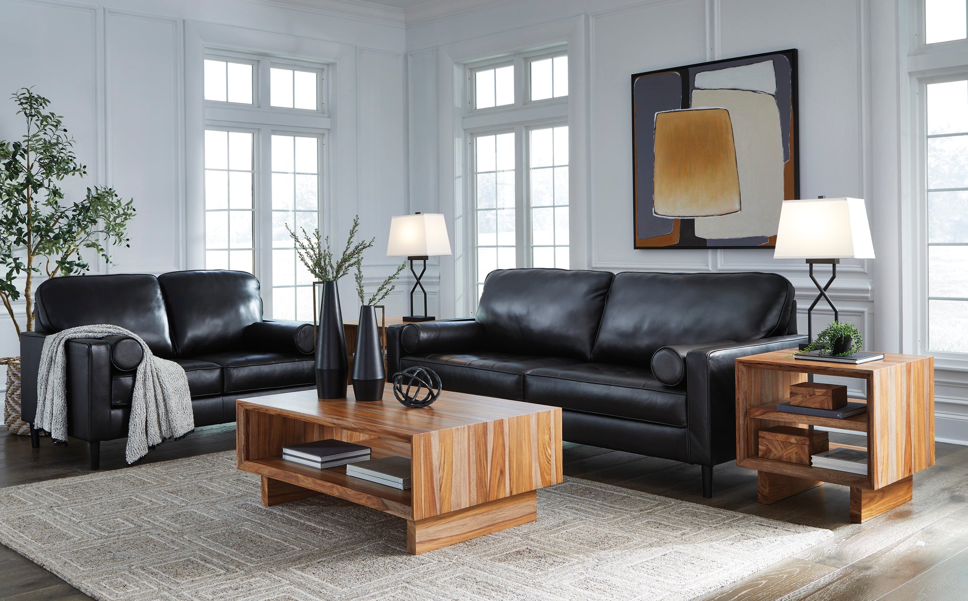• This sofa embodies timeless mid-century elegance with its linear design, sleek track arms and tapered legs. Genuine leather in the seating area adds a luxurious touch to the overall look. Experience endless style opportunities for today's living spaces.