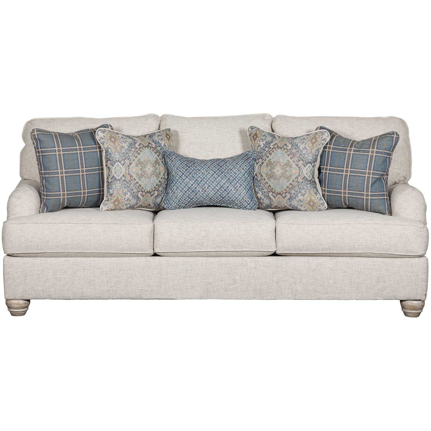 • Don’t be shy—take a seat on this farmhouse-style sofa. Dressed in a modern and relaxed linen-weave upholstery, it’s a luxurious complement to rustic accents with its light and airy palette and elegantly turned feet. What a picture-perfect finish to any shabby chic or countryside living room.