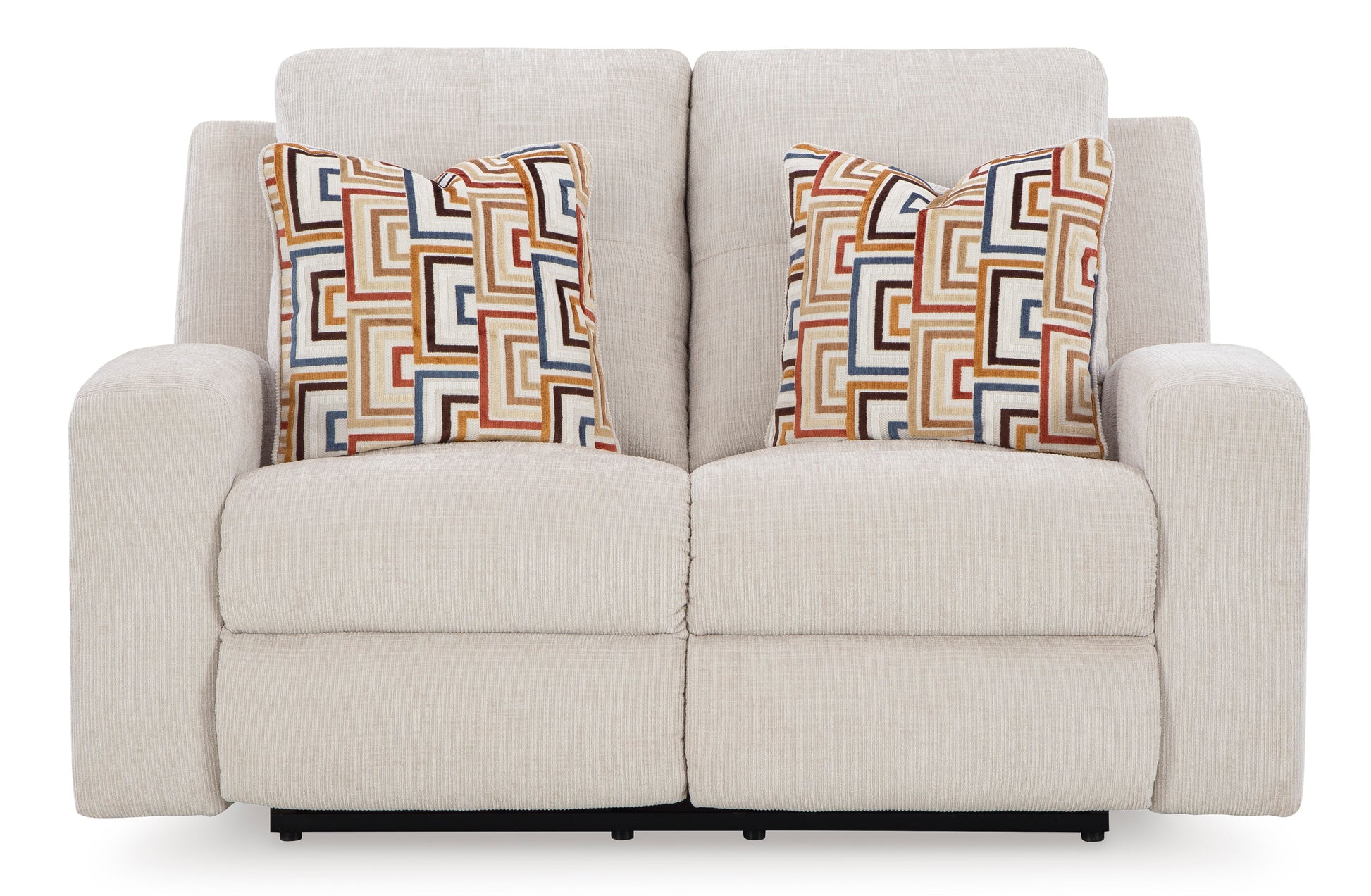 • This reclining loveseat invites you to a luxuriously soft lounging experience. The chic hue fits right in with contemporary color palettes. A tufted back keeps the look right on trend. Balancing style and function, its pull tab reclining effortlessly takes you to relaxation mode.