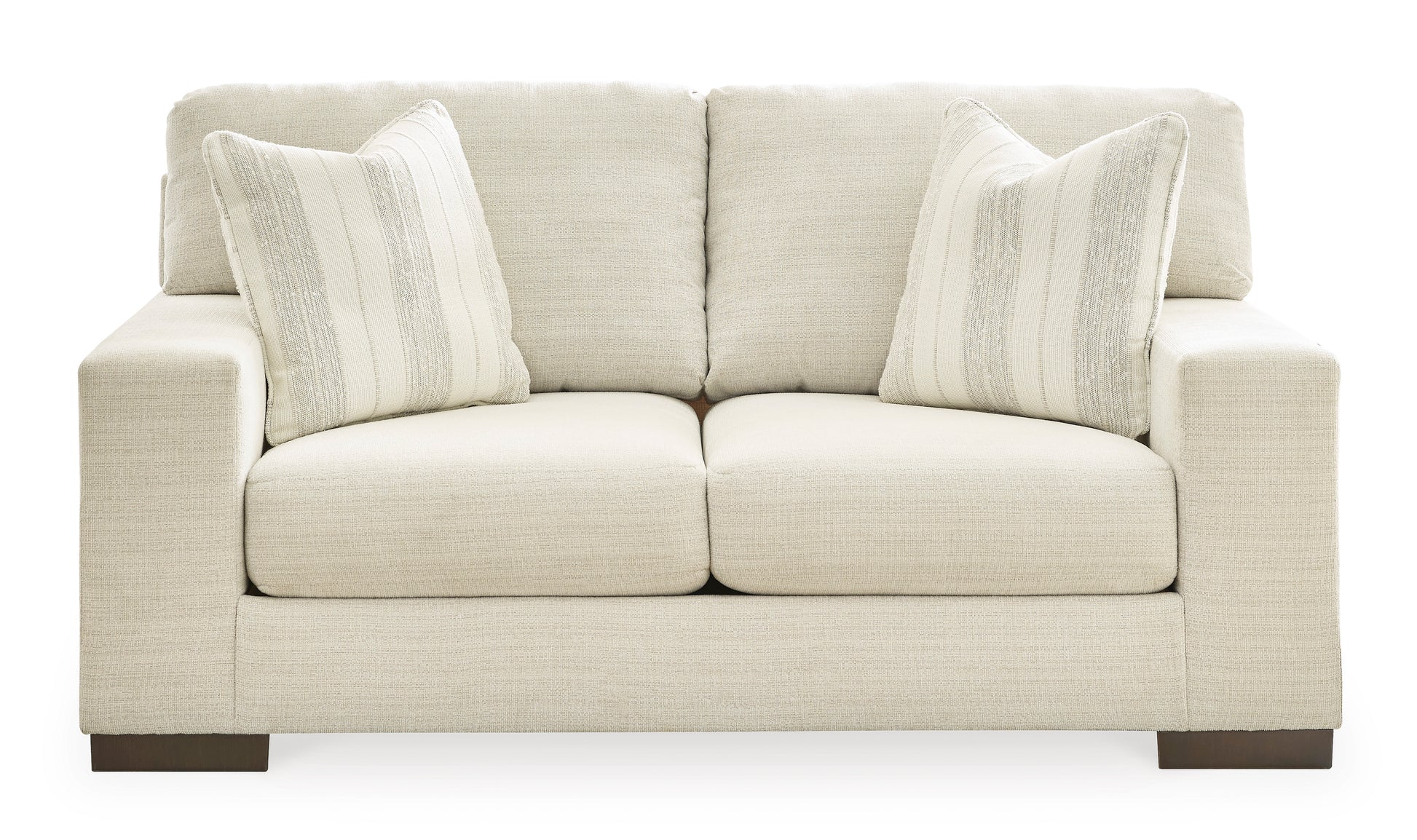 • Classic comfort gets a mod twist with this loveseat. Its minimalistic approach and structured silhouette bring a clean-lined design element to your living room. Sink into the positively plush cushions while relaxing solo, or curl up with a glass of wine while hosting guests. And with light neutral upholstery that suits both casual and contemporary spaces, this loveseat offers endless style possibilities.