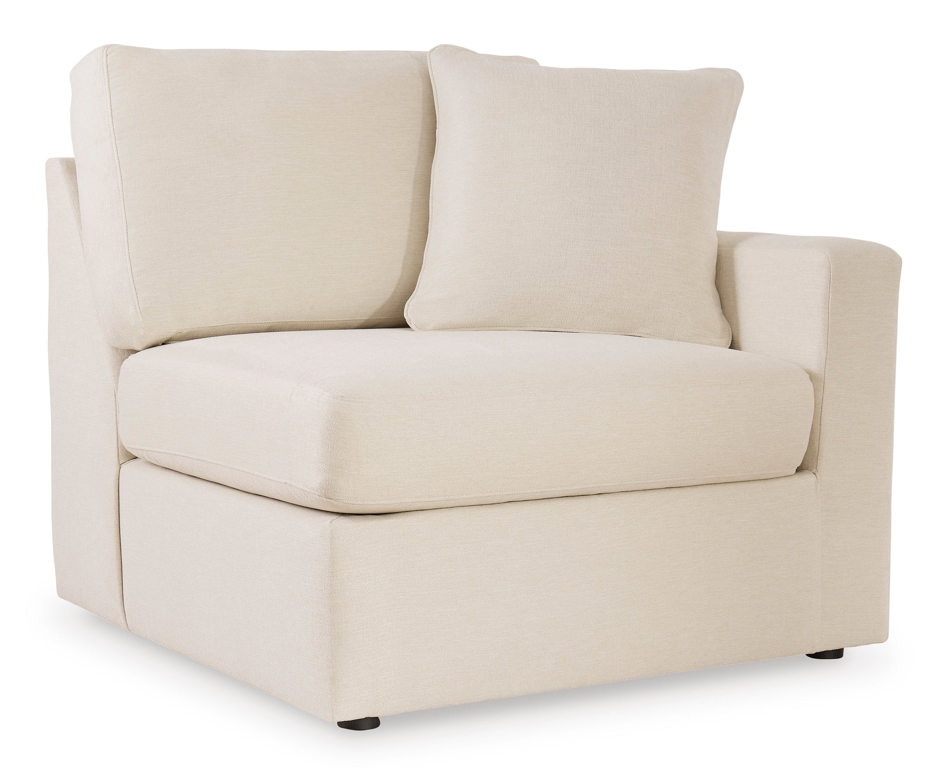 • This right-arm facing corner chair is made with Next-Gen Nuvella™ (polyester) fade-resistant, washable fabric. Fully finished on all sides, it pairs with other items in the series to make a modular sectional.