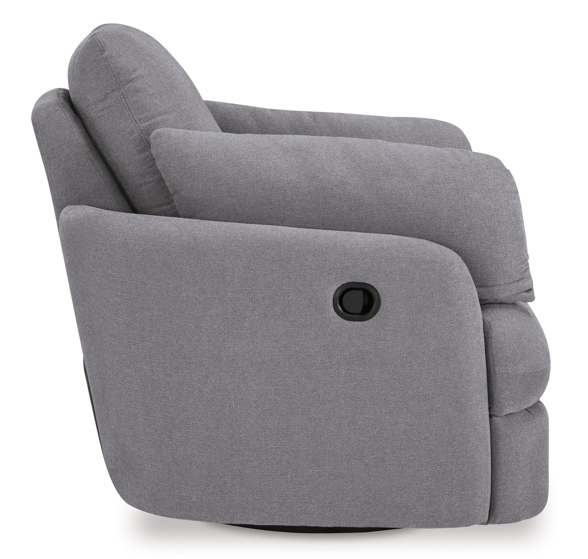 • Looking cool and contemporary is great. But when it comes down to it, you’re all about low-maintenance lounging. With the performance fabric on this swivel glider recliner, cleaning spills is a breeze. Its versatile design caters to your ever-changing needs, making it an ideal companion for a sectional or sofa. The smooth reclining motion and 360-degree swivel keep you relaxed and in the flow of conversation. And an added bonus: remove the loose bolster pillows to reveal some pretty sweet hidden storage compartments. They’re just the spot for your remotes, snacks and whatever else tickles your fancy.