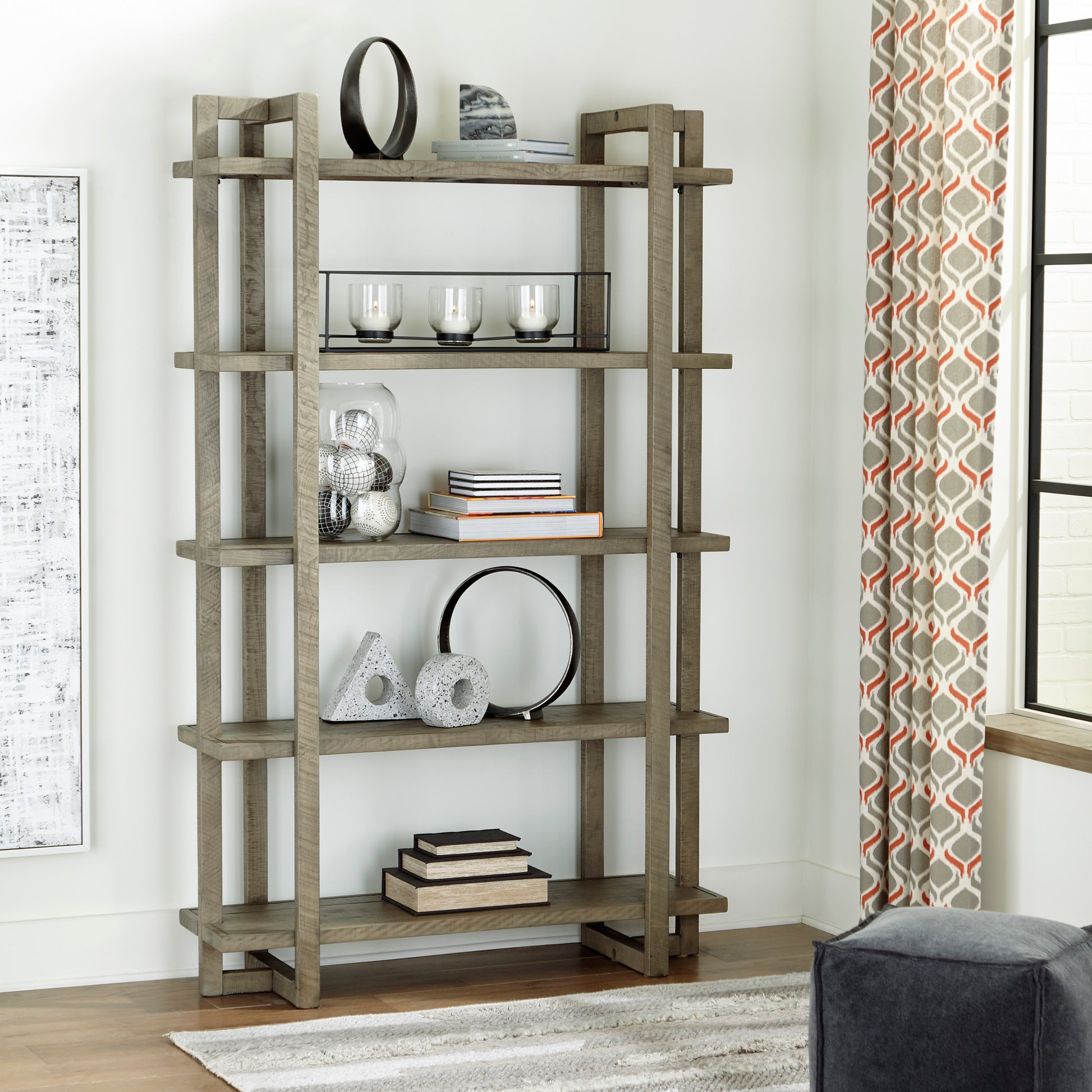 • Clean-lined with an architectural attitude. This bookcase offers a new take on relaxed refinery. Five shelves provide plenty of space for your personal library or decorative pieces. Dressed in a distressed gray finish, it suits a myriad of modern and casual color palettes.