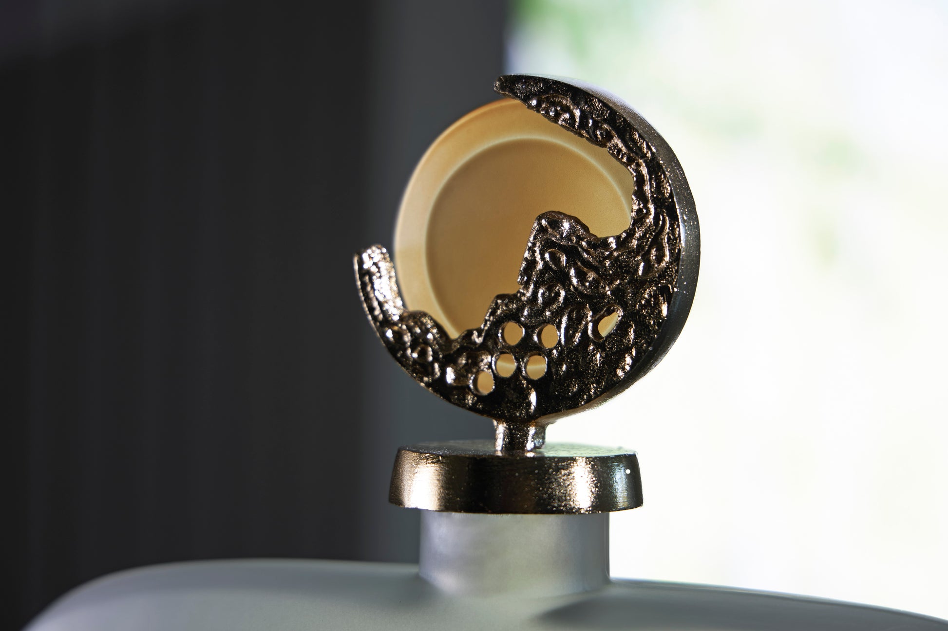 - Cast aluminum topper with goldtone finish