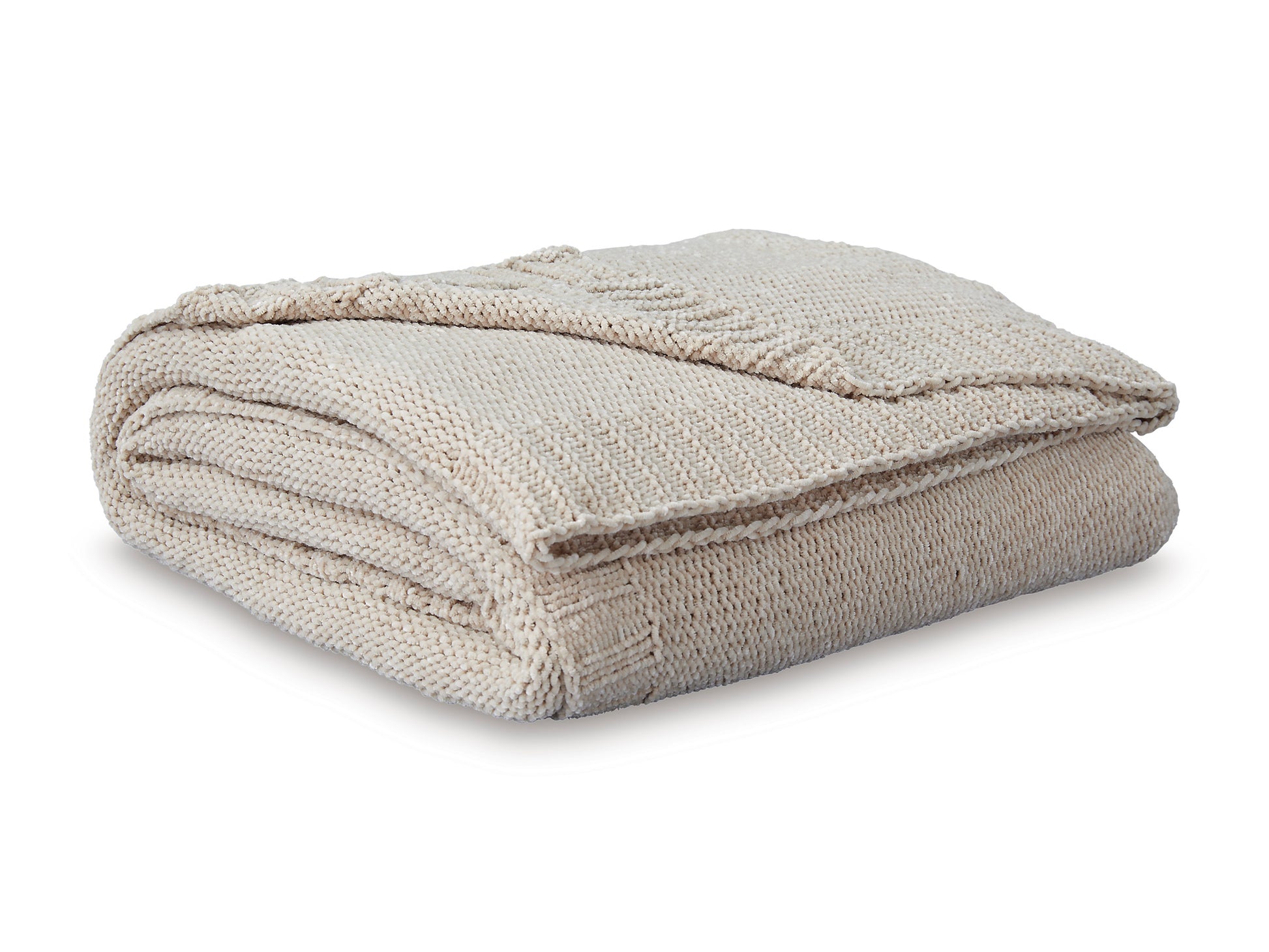 Comfort meets casually chic style in this throw blanket. Its neutral hue and knitted construction create trendy textural variation when draped over a sofa or the foot of a bed. And it goes beyond style, with the soft chenille fabric acting as a cozy companion for your morning reads or movie nights. No stress needed when it’s time for a refresh—simply toss the throw in the washing machine for nearly effortless cleaning.