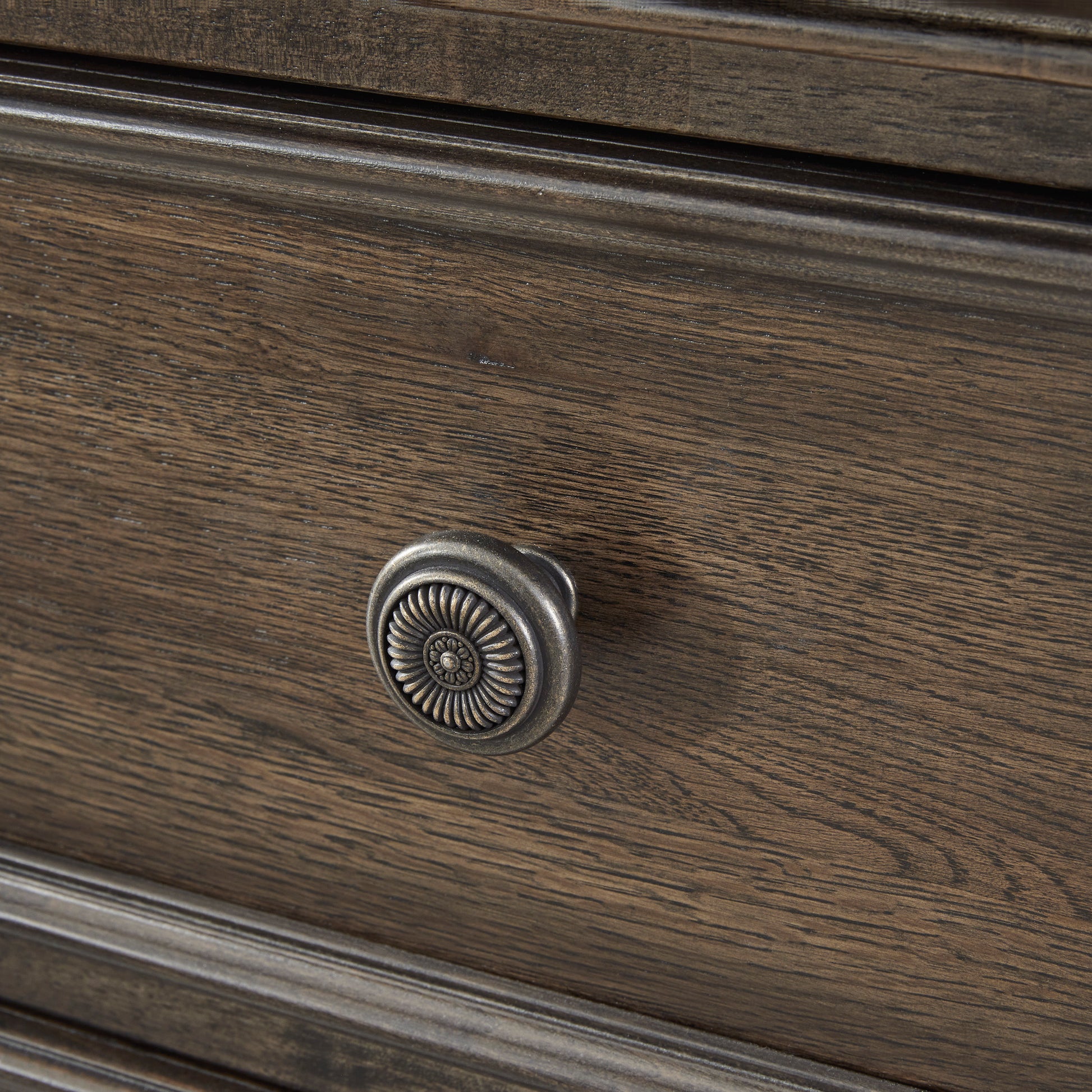 • Round metal knobs with antiqued bronze-tone finish