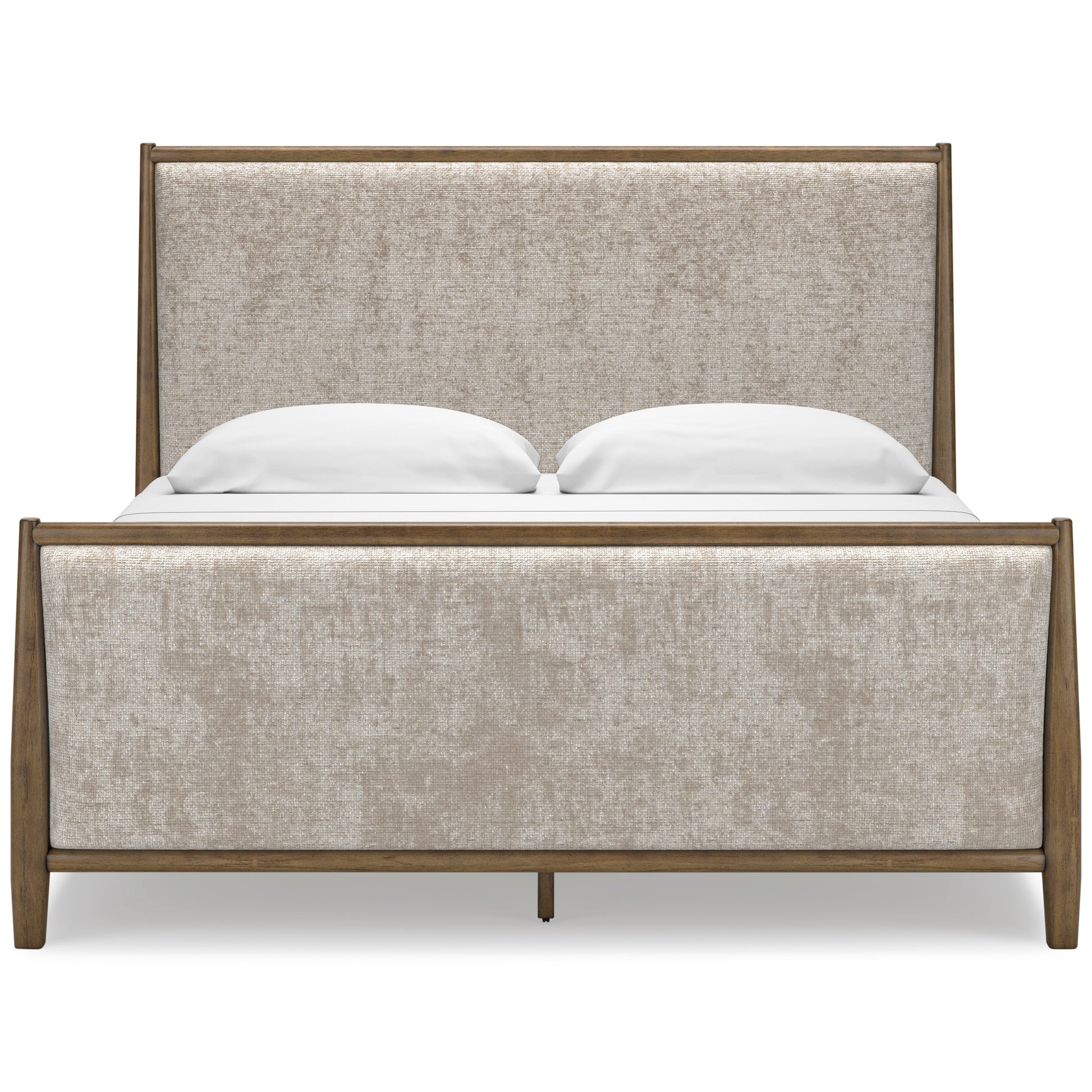 • Give your mid-century modern bedroom that finishing touch with this king upholstered bed. Its softly woven fabric, encased in a well-crafted frame, enhances the design with stunning style. This bed takes minimalism to the max.