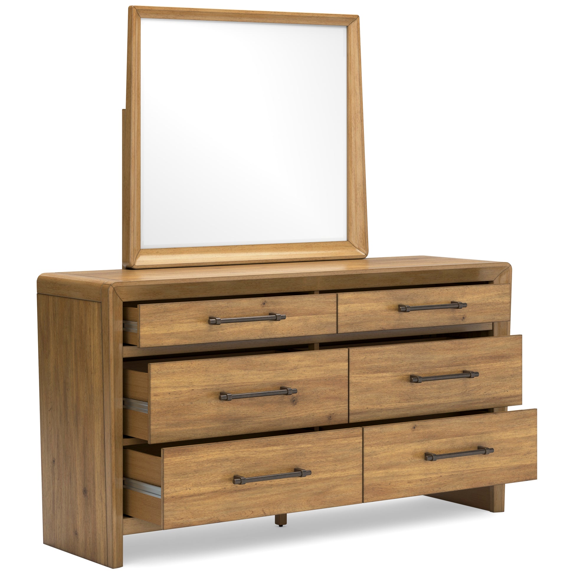 • To you, simplicity is the ultimate form of sophistication. With this dresser and mirror, you invest in making everyday life simply beautiful. Emphasizing the stunning look of natural materials, its six storage drawers are a warm, welcoming home for clothing and other essentials. Felt-lined top drawers keep jewelry equally as cozy. This set balances quiet elegance and a fresh boho feel, with a tapered frame adding a forward-thinking take on contemporary design.