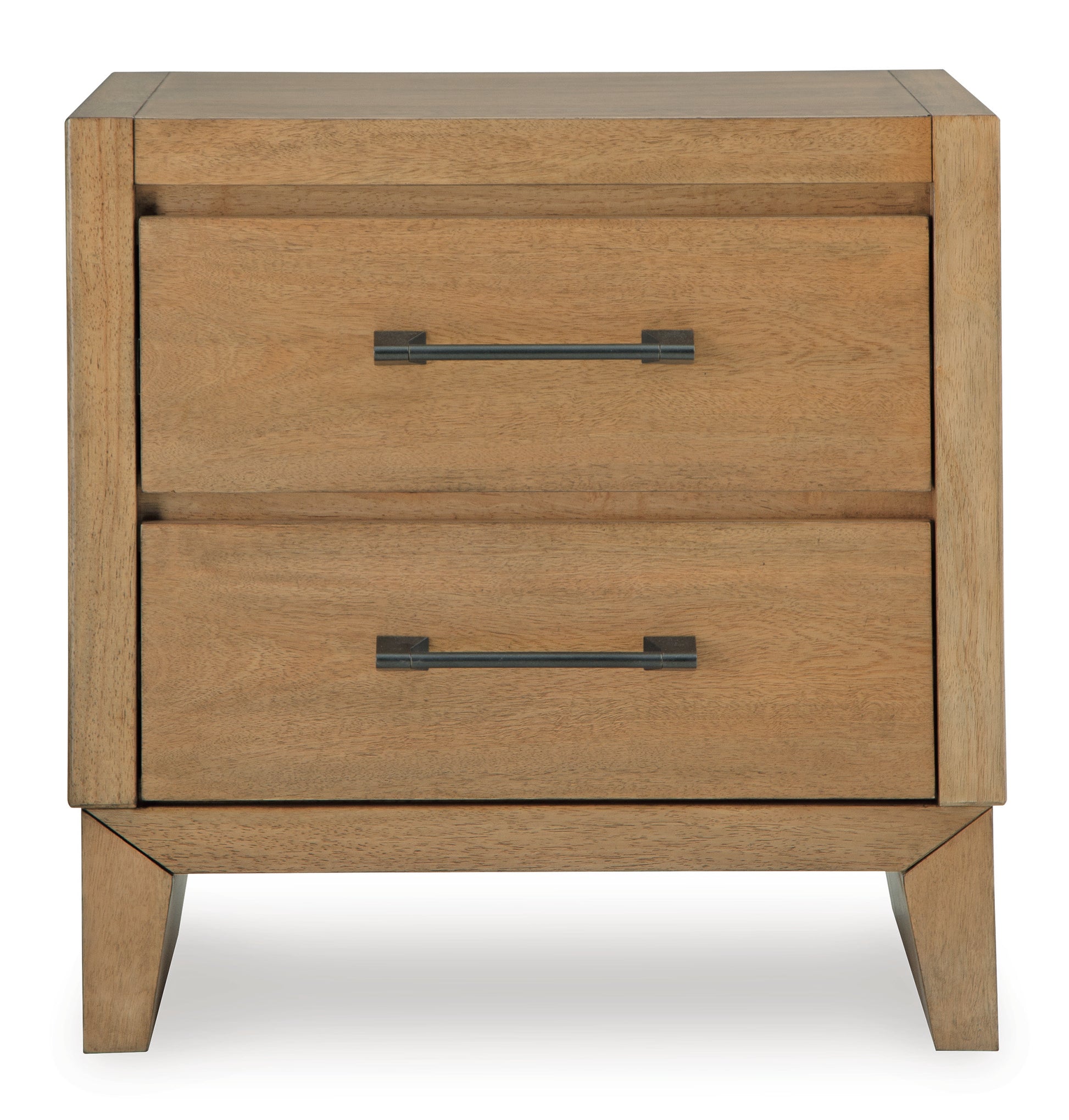 • If you appreciate minimalistic style, this nightstand is the ideal option. Its soft and simple finish has a laid-back sensibility, blending relaxed contemporary design with a trendy allure. The spacious drawers are accented with stylish metal drawer pulls in a darkened bronze tone. What a delightful addition to your casual-chic decor.