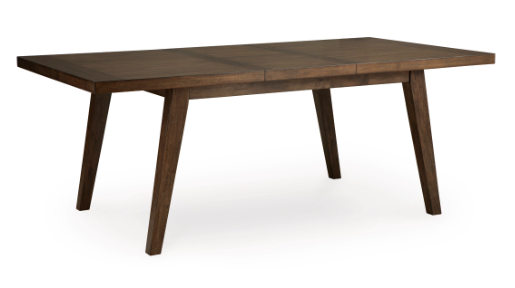 • This extension dining table is urban contemporary style at its finest. It pairs the beauty of wood with a deep walnut finish for a splendidly sleek vibe. Styled with a self-storing leaf to comfortably seat six, this table makes room for one and all to linger longer. What a wonderful show of great taste.