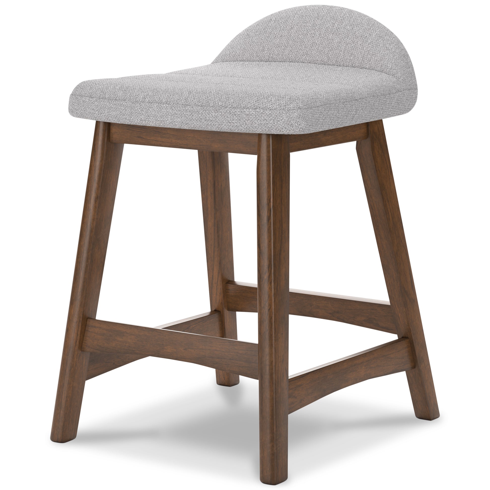 • A refreshed take on retro aesthetics. The Lyncott upholstered bar stool adds an air of playful simplicity to your dining space, capturing the architectural language of mid-century stylings. The seat invites the eye with a soft-edged silhouette and light gray cushion. A casual, yet timeless, finish on the frame creates visual contrast to complete this study in form and function.