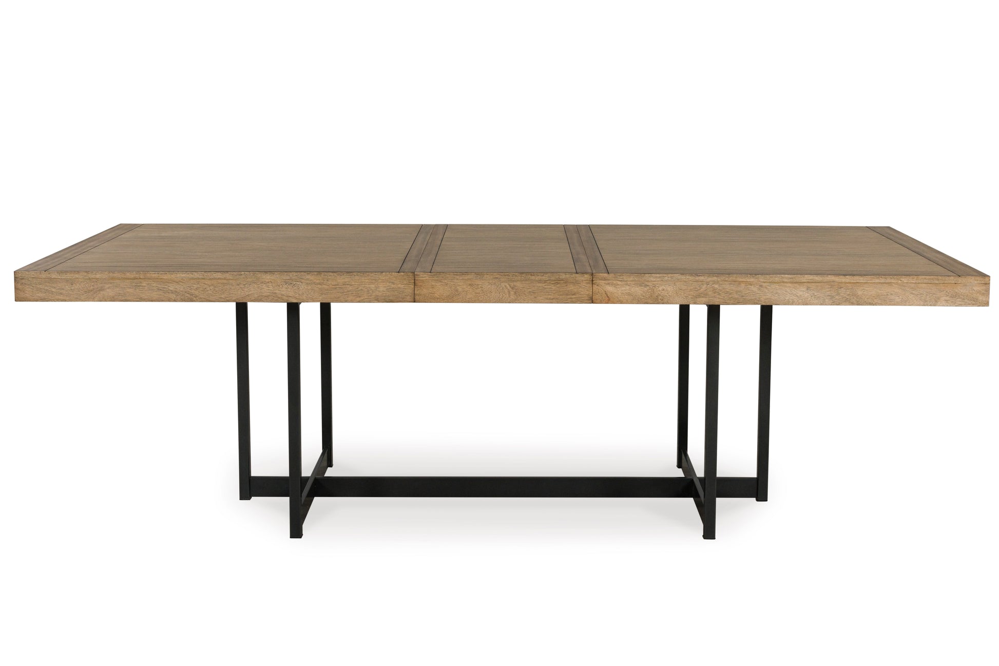 • Sleek in its simplicity, this dining extension table takes a relaxed approach to refinement. Its mixed-material design brings a trendy urban-chic feel to dinner time. And when guests drop in, there’s a seat for everyone—a self-storing leaf extends the table to comfortably host eight.