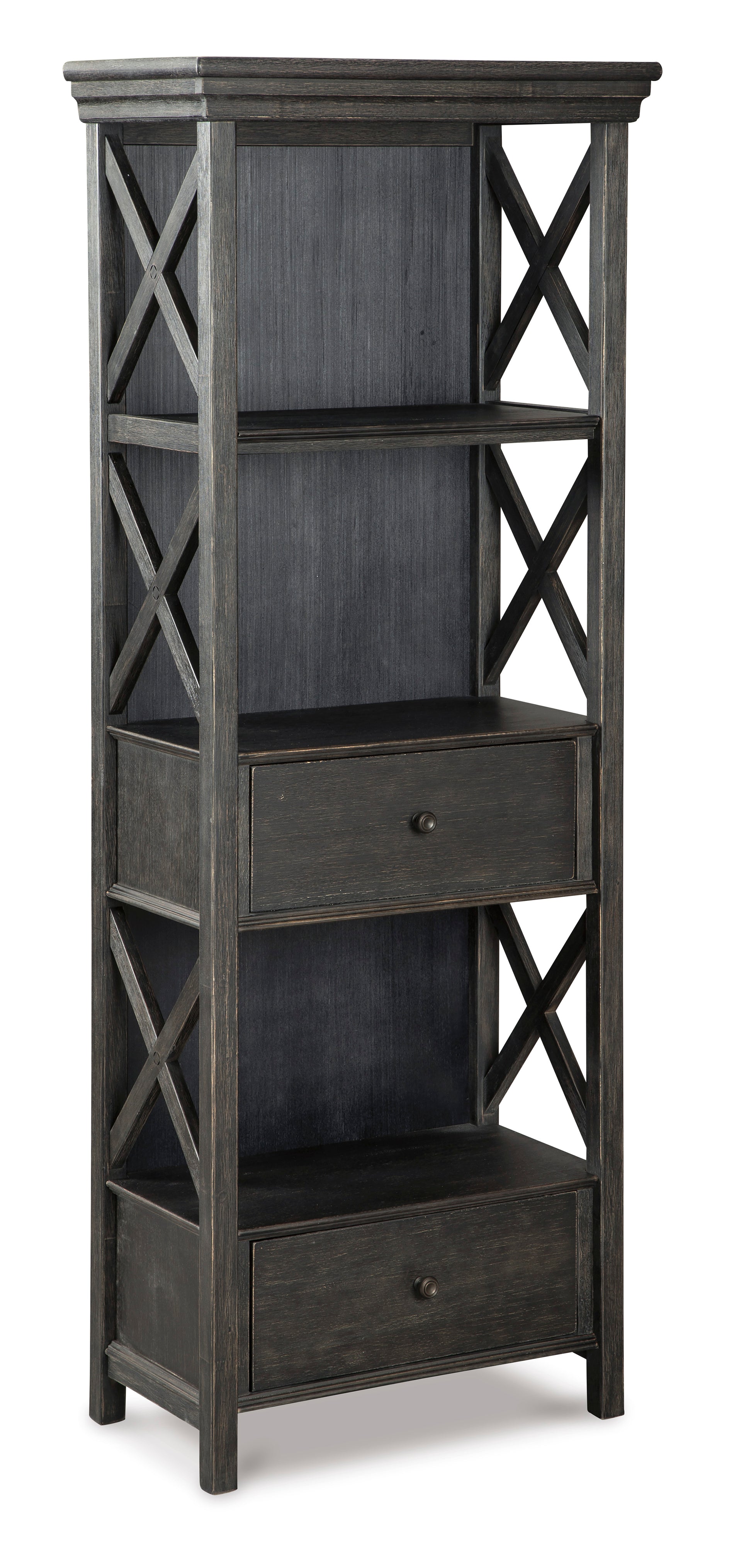 Invite your family into the heart of your home with this dining room display cabinet. Black finish is beautifully textured. Put your dinnerware and decor on display on the top shelf. Store away essentials inside the roomy drawers. X-shape design down the sides makes it all around eye-catching. This is trend-right urban farmhouse style.