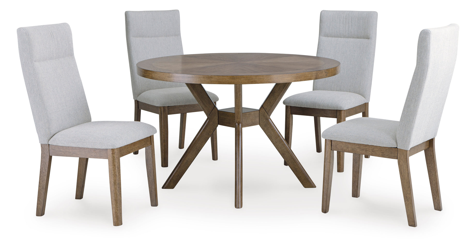 Introducing this stylish and practical upholstered dining chair. Its mid-century modern silhouette, high back and soft curves are sure to make a statement around the table. And the easy-clean Nuvella® fabric means spills and stains don't stand a chance. With this chair, dining with friends and family has never been easier.