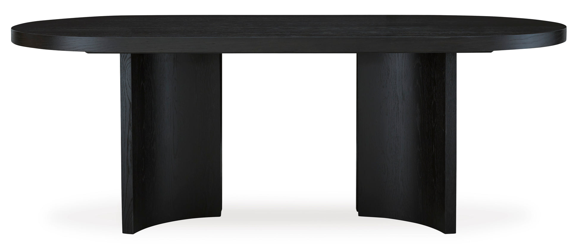 • Informed by art deco design, this oval dining table makes a lasting impression in a simply stunning way. Its magnificent curved silhouette and architectural pedestal are enhanced with a rich layered black finish. It’s the contemporary statement piece you’ve been seeking to elevate late-night dinners and full-on family feasts.