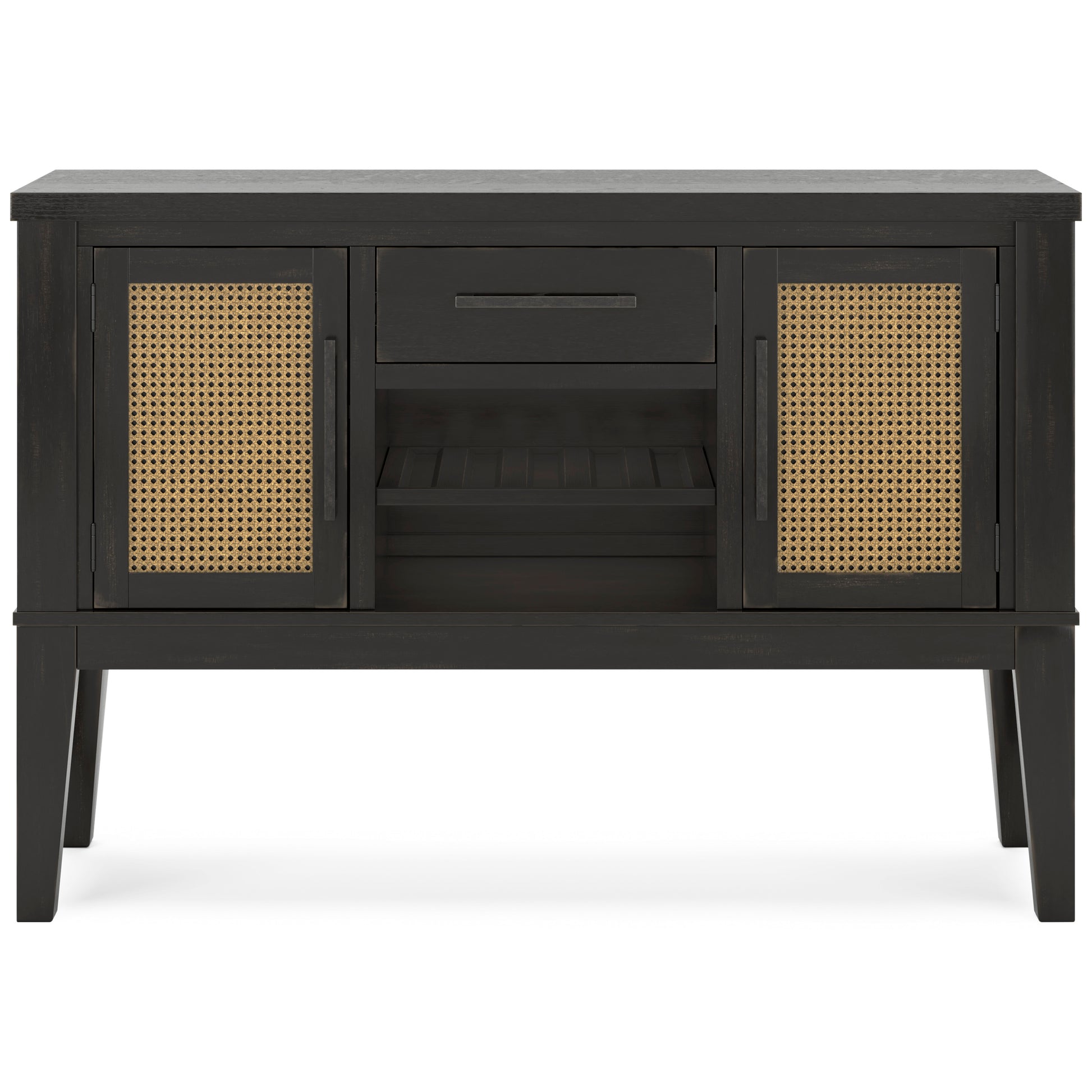 • This dining server brings a rustic vibe to urban contemporary design. It’s a modern approach to natural beauty, with faux cane accents incorporating eye-catching texture. Chic storage is made possible with a reversible wine rack shelf, a drawer and cabinets. And the server’s color palette is stunningly simple, allowing it to coordinate seamlessly with your existing decor.