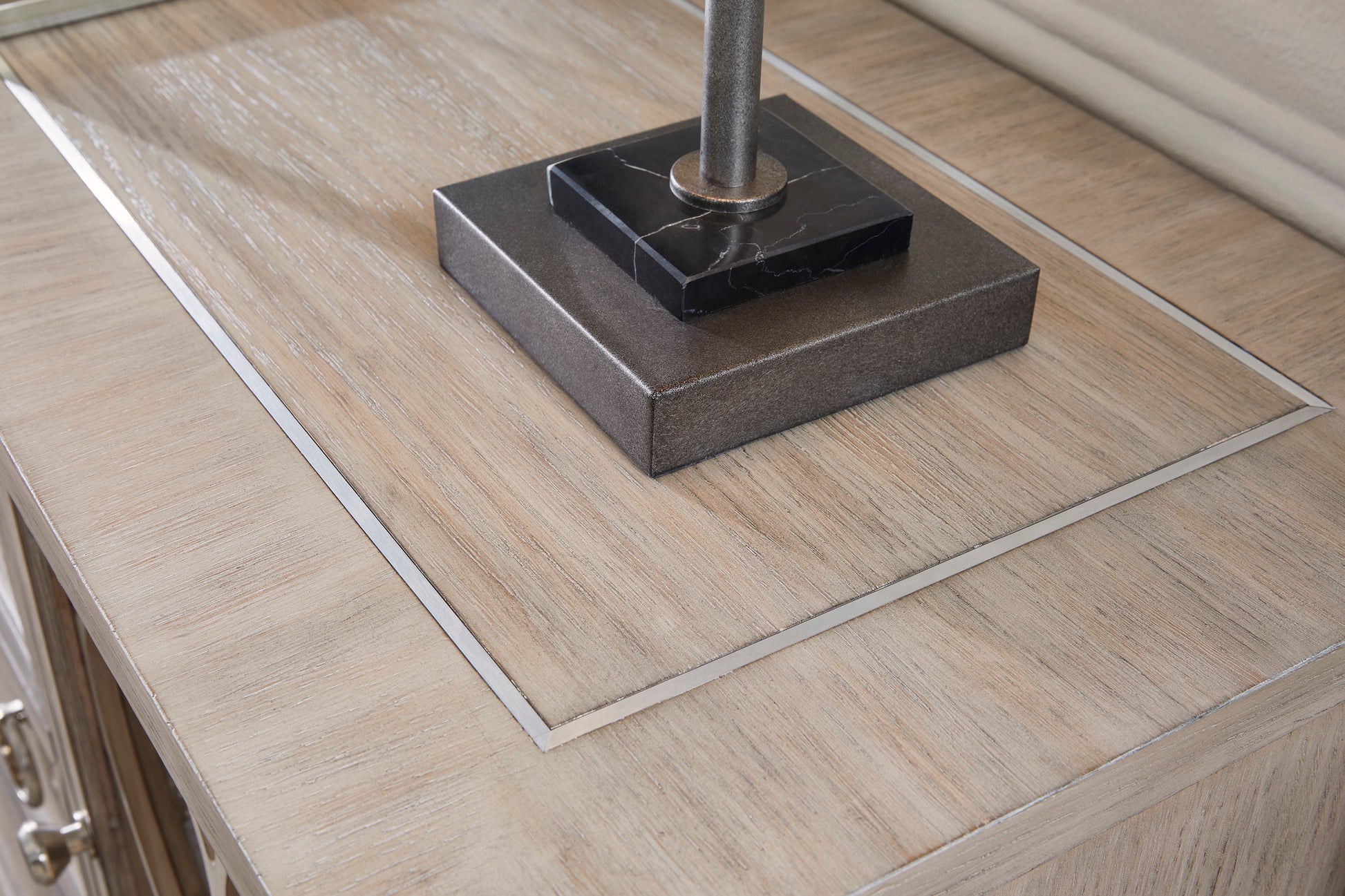 • 3 drawers with dovetail construction, fully finished drawer interiors (top drawer is felt lined) and heavy-duty, ball-bearing side glides