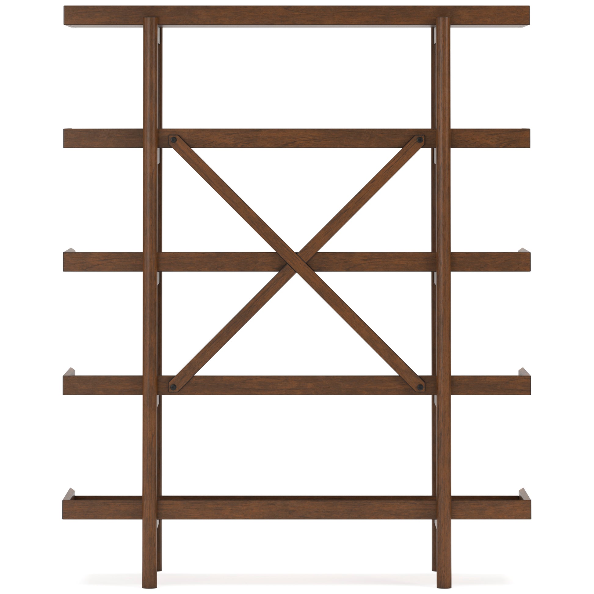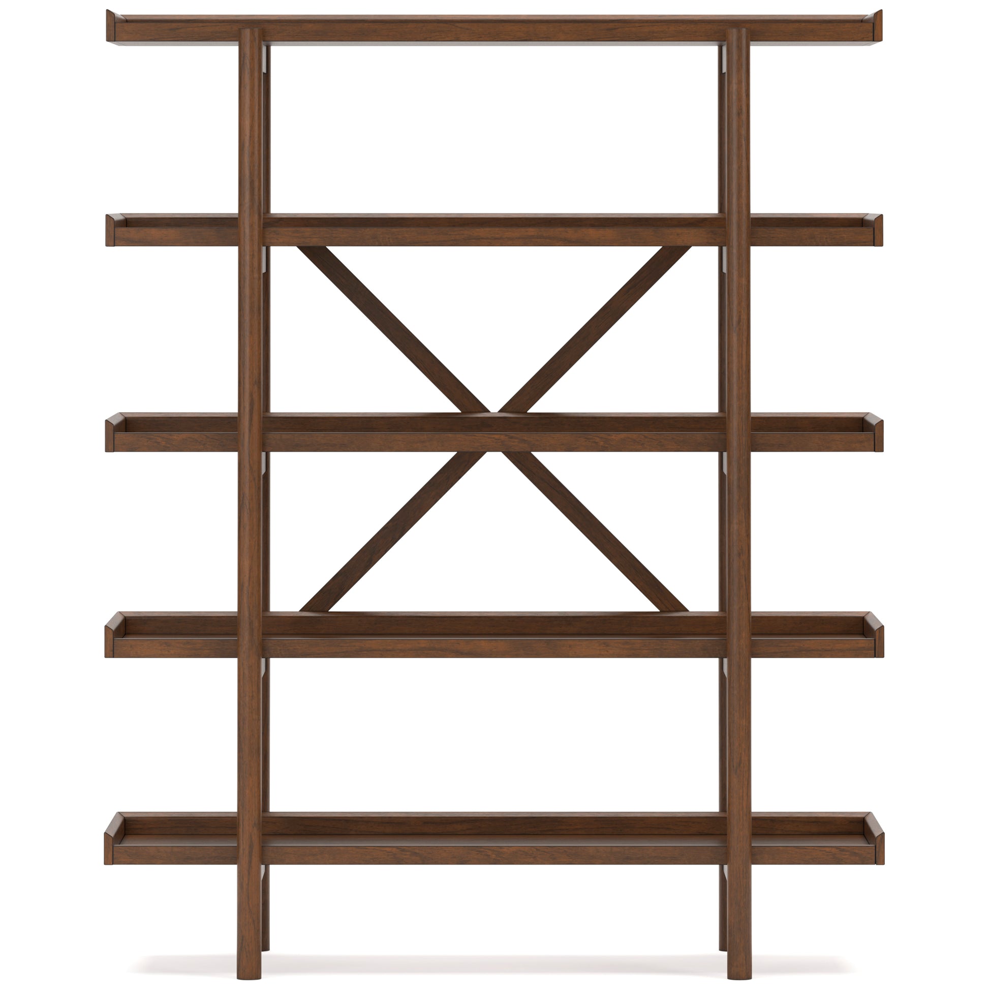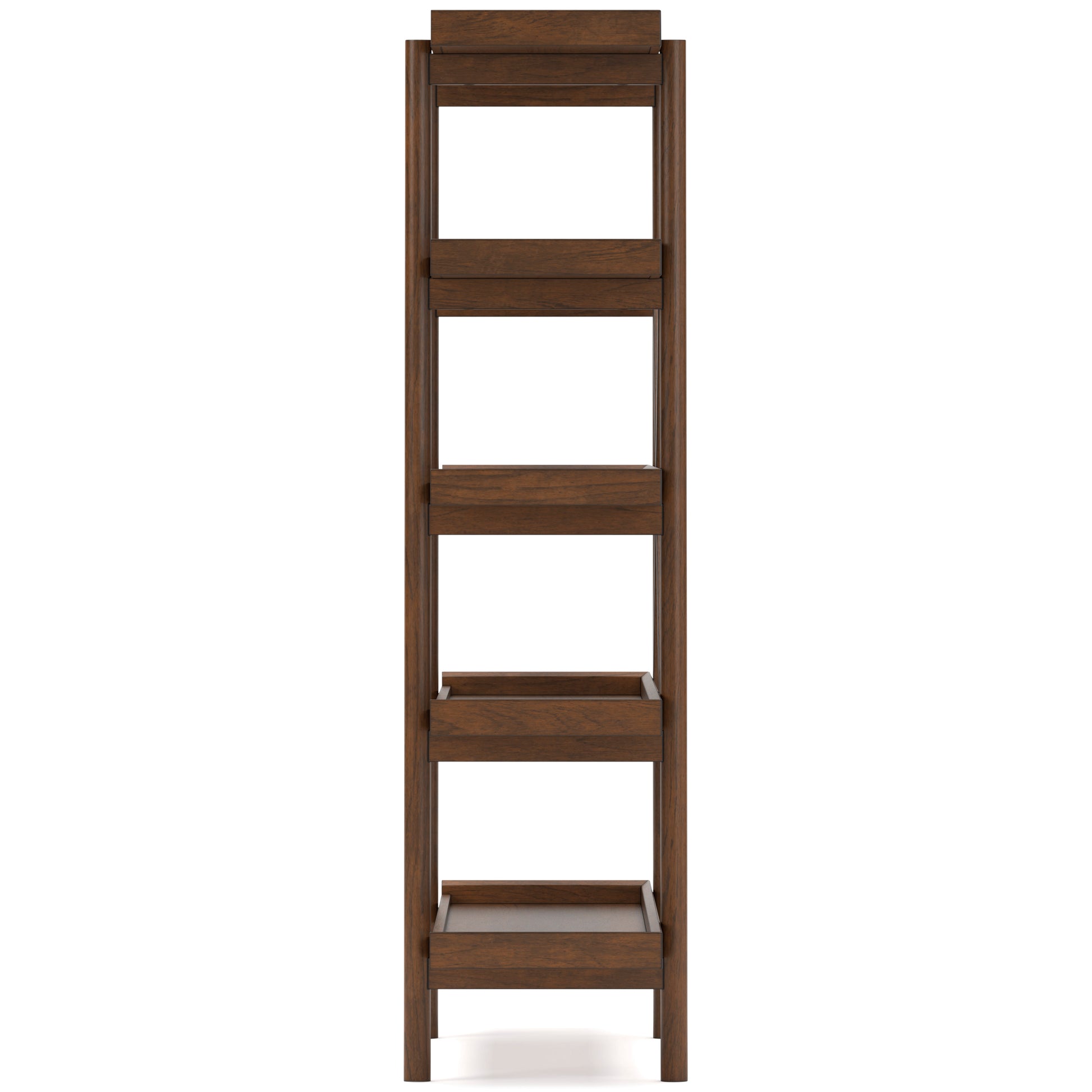 • A refreshed take on retro aesthetics. This bookcase adds an air of playful simplicity to your home, capturing the architectural language of mid-century stylings. Subtle in design, it invites the eye with a sleek, open frame. A casual, yet timeless, finish and five gallery shelves stack up for great form and function.