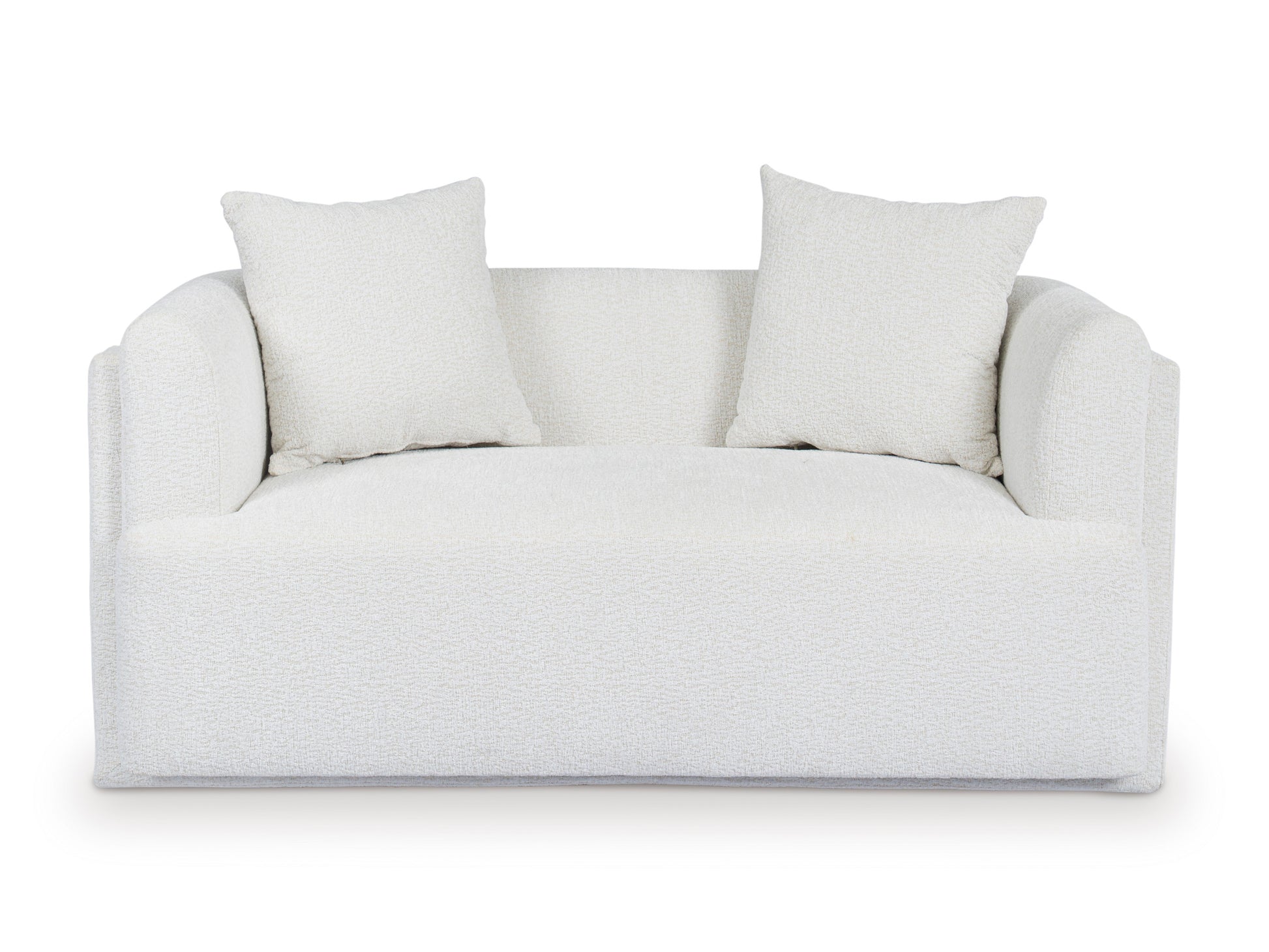 • Experience modern comfort with this thoughtfully designed loveseat featuring round arms and a refined silhouette. The non-skid legs provide stability while maintaining a contemporary profile that elevates any living space. Its washable Next-Gen Nuvella™ fabric makes upkeep a breeze. The addition of toss pillows creates a perfectly balanced piece that combines sophistication with everyday functionality.