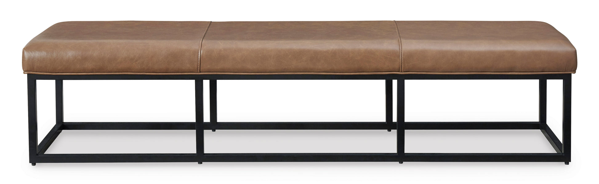 This accent bench takes a contemporary approach to everyday function. Showcasing a sleek combo of caramel leather upholstery and a black frame, it's a chic and convenient seating solution. Place this bench by the entryway, or at the foot of your bed, as a spot for slipping on shoes or resting bags and purses.