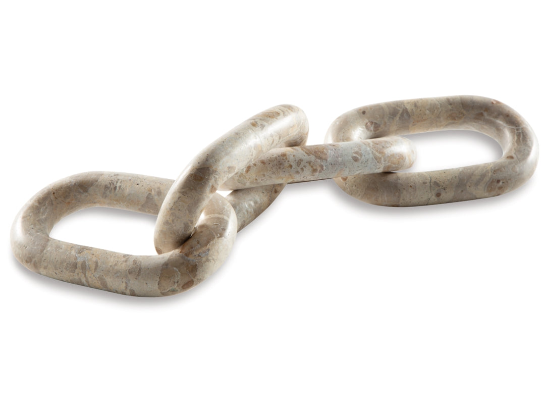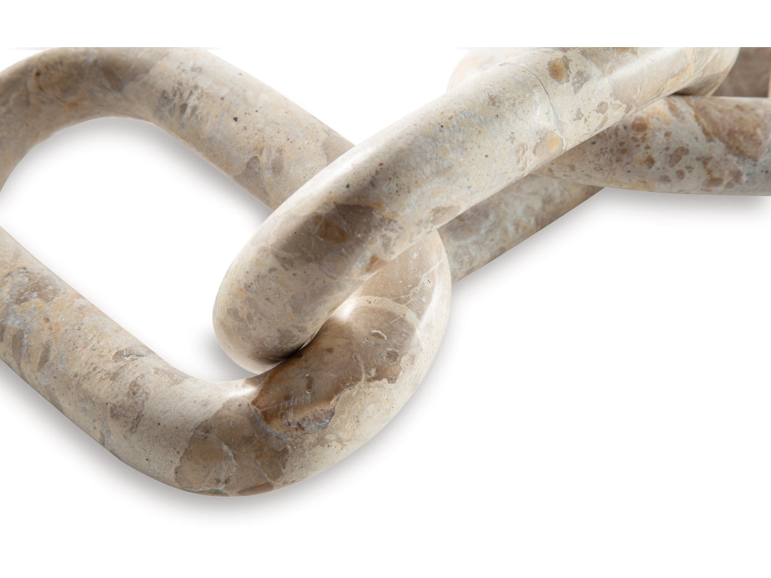 • Striking from every angle, the Kenport sculpture connects you with some casually cool art. Its interlocking light beige marble links add a chill vibe to your decor. Adorning a shelf or as a statement piece on its own, it’ll bring home the prize wherever it’s placed.