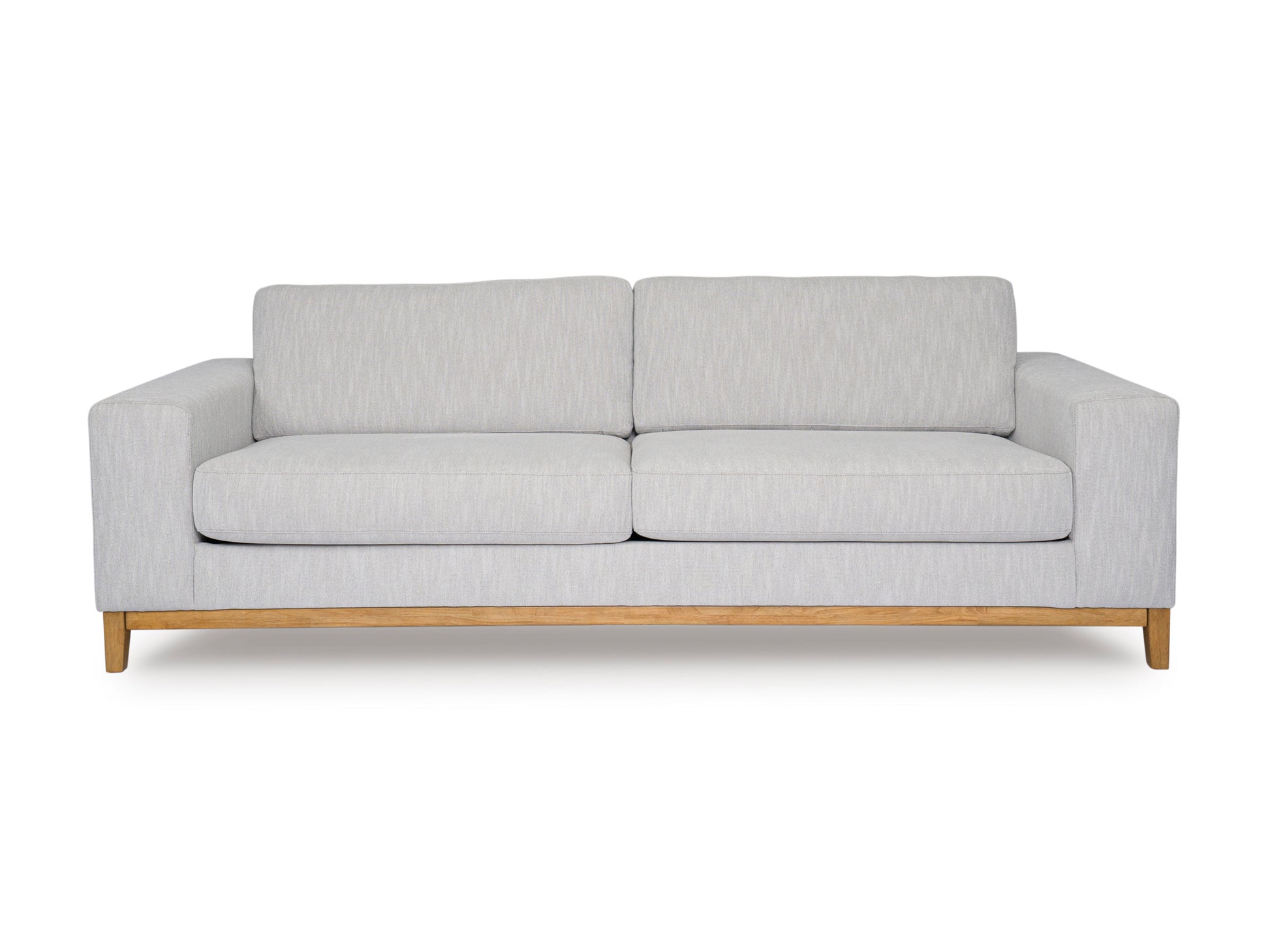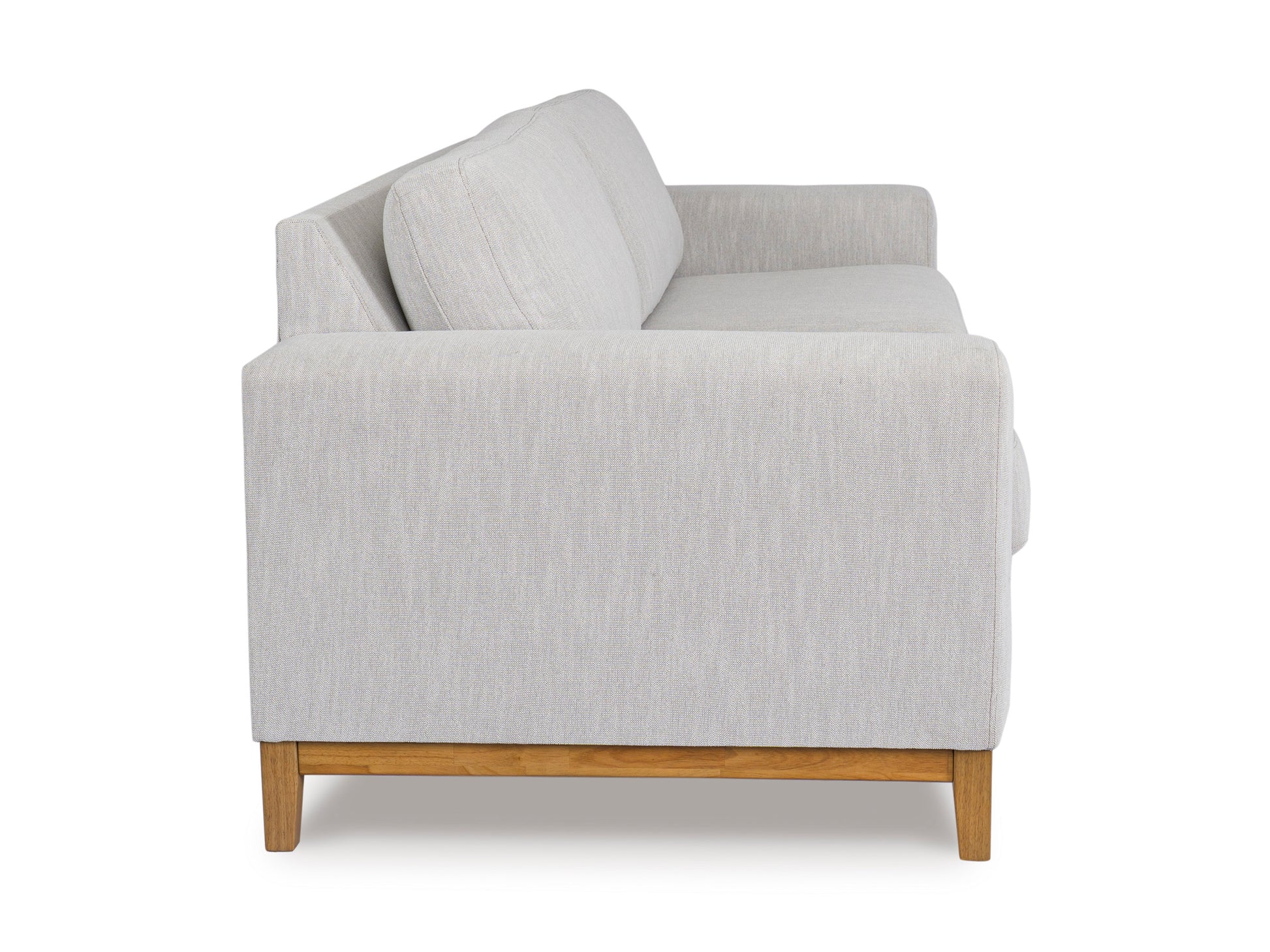• Transform your living space with this expertly crafted sofa that combines clean lines with exceptional comfort. The exposed rails and feet with faux wood finish add architectural interest while creating a contemporary silhouette that works in any room. The reversible cushions ensure lasting comfort and durability, making this piece perfect for everyday living.