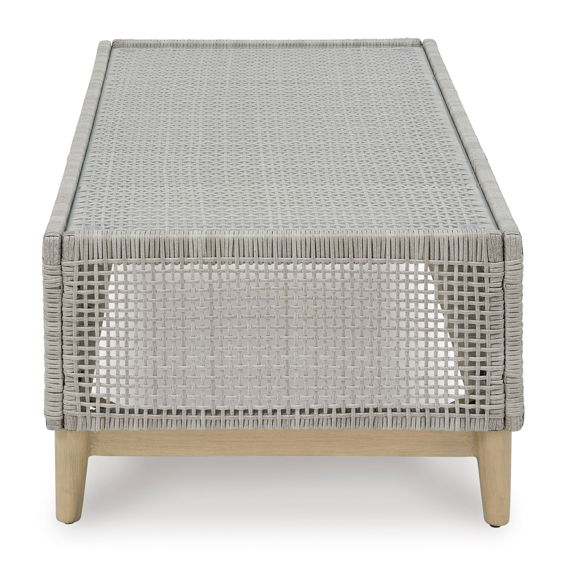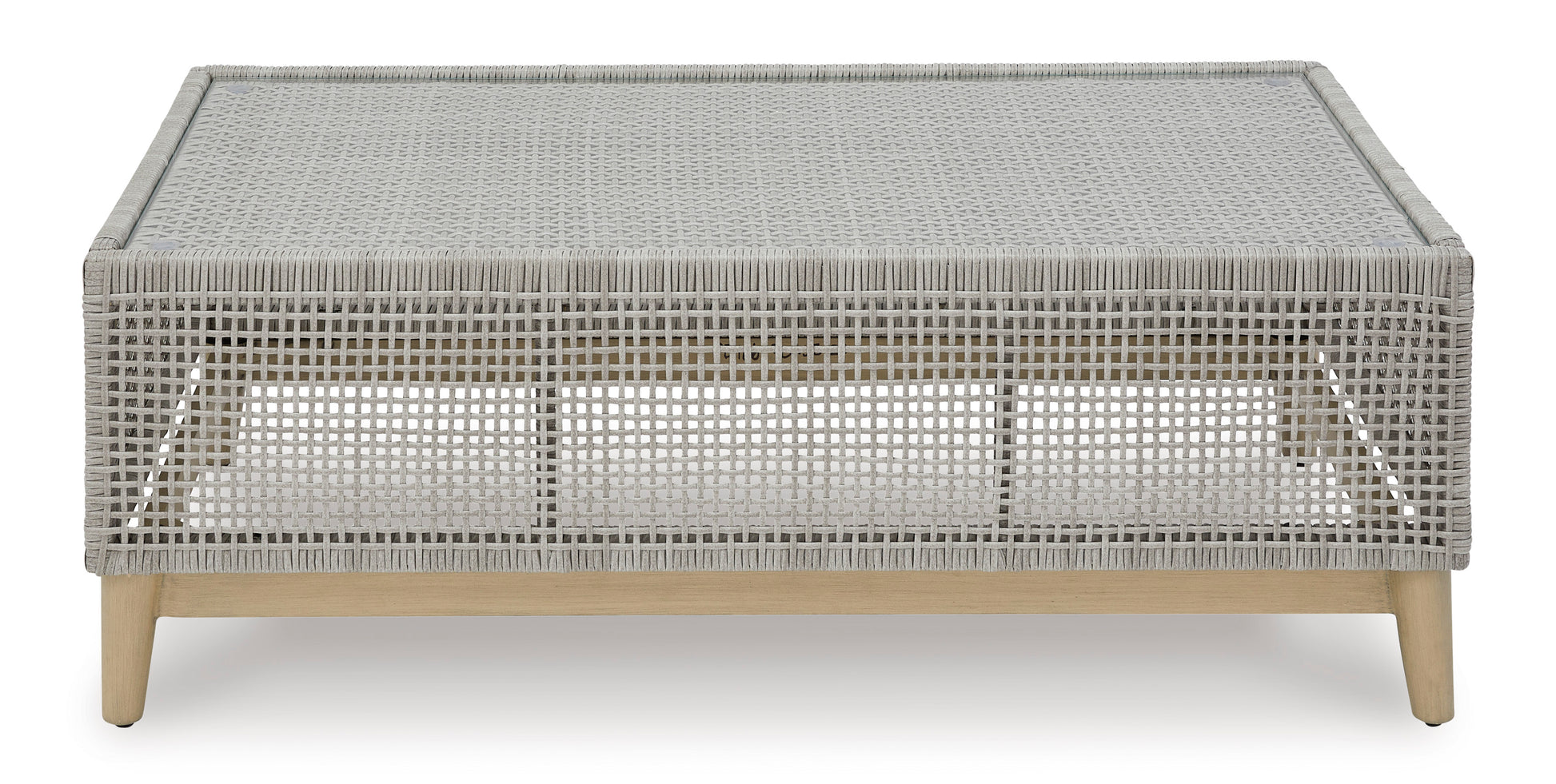 • This coffee table invites your casual contemporary style outdoors. With its resin wicker in a chic neutral hue, it expertly marries refined design with durability. Breezy summer mornings and cold winter nights are made all the more enjoyable with a glass tabletop on hand to hold beverages, snacks and your latest poolside read.