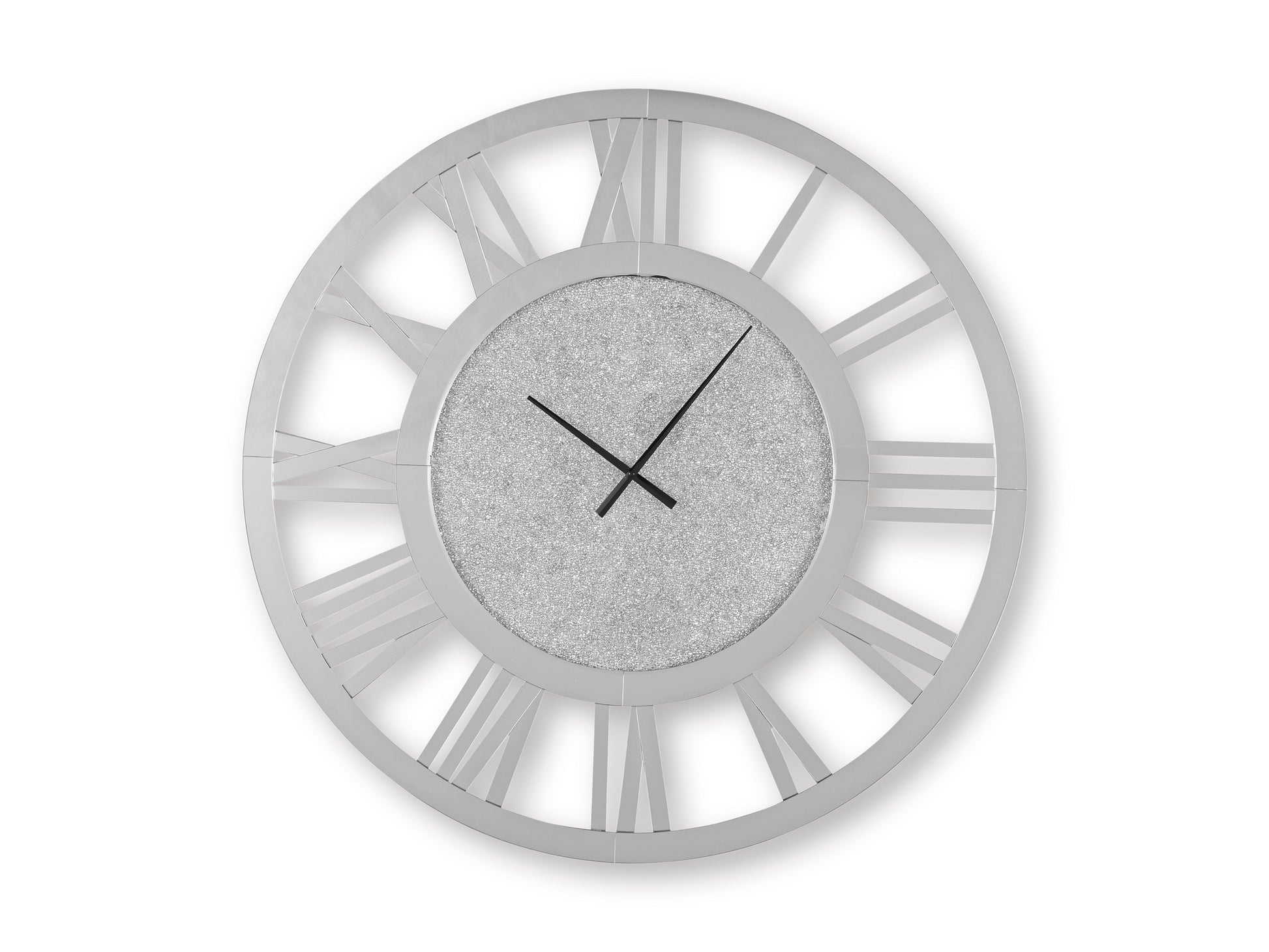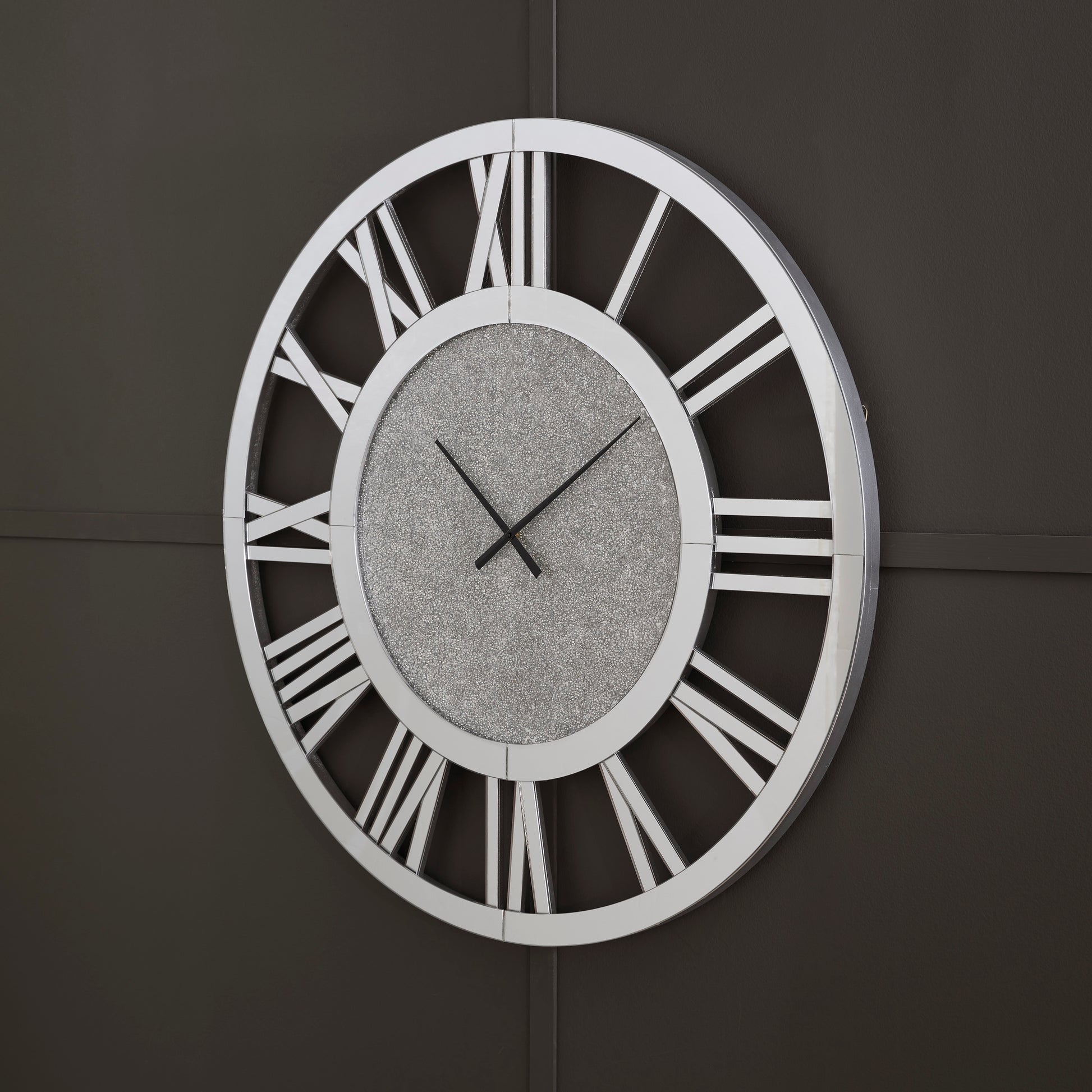 Add some serious sparkle and sophistication to your space. This glamorous wall clock combines cut glass and beaded crystal for a stunning display of light and texture. Classic Roman numerals add a touch of timeless elegance.