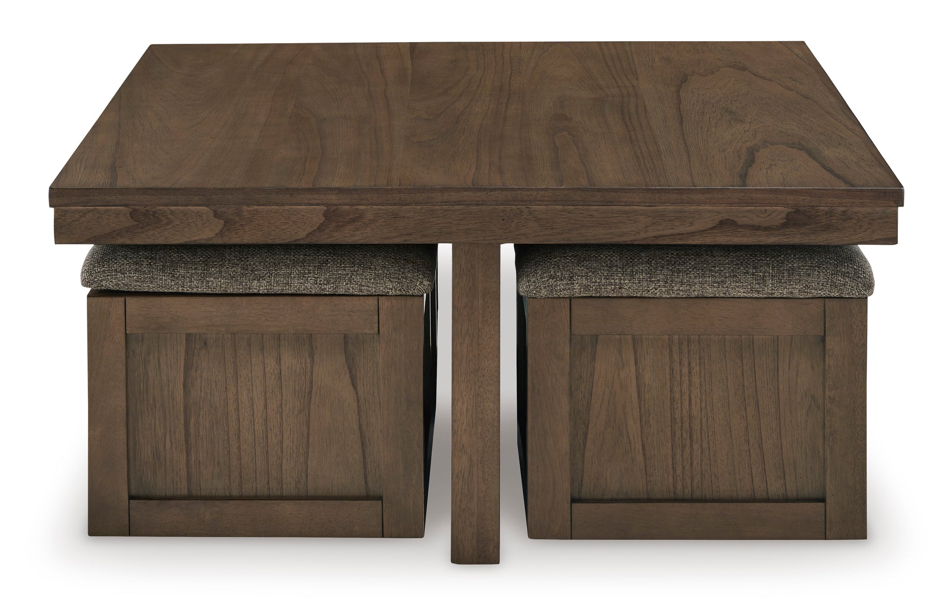 • Elevate your entertainment experience with this coffee table with stools. A functional companion for your seating area, it’s defined by a richly versatile finish. Instantly upgrade game days and movie nights—the four stools wheel out easily with casters, tucking away neatly under the table when you’re done. And with storage under the top of each stool, you can keep essentials on hand and out of sight.