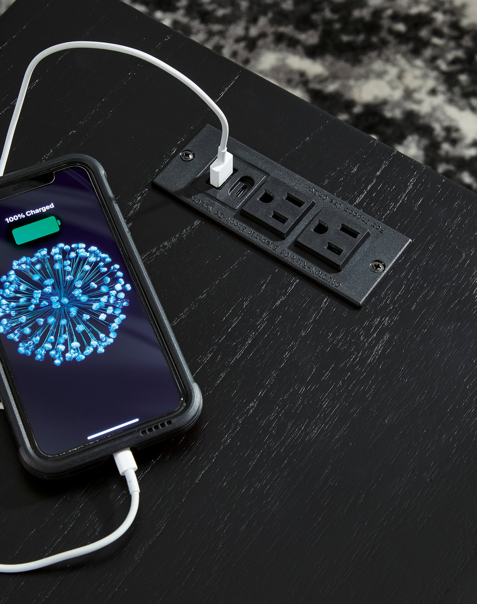 • 110V power supply with USB-A and USB-C charging ports
