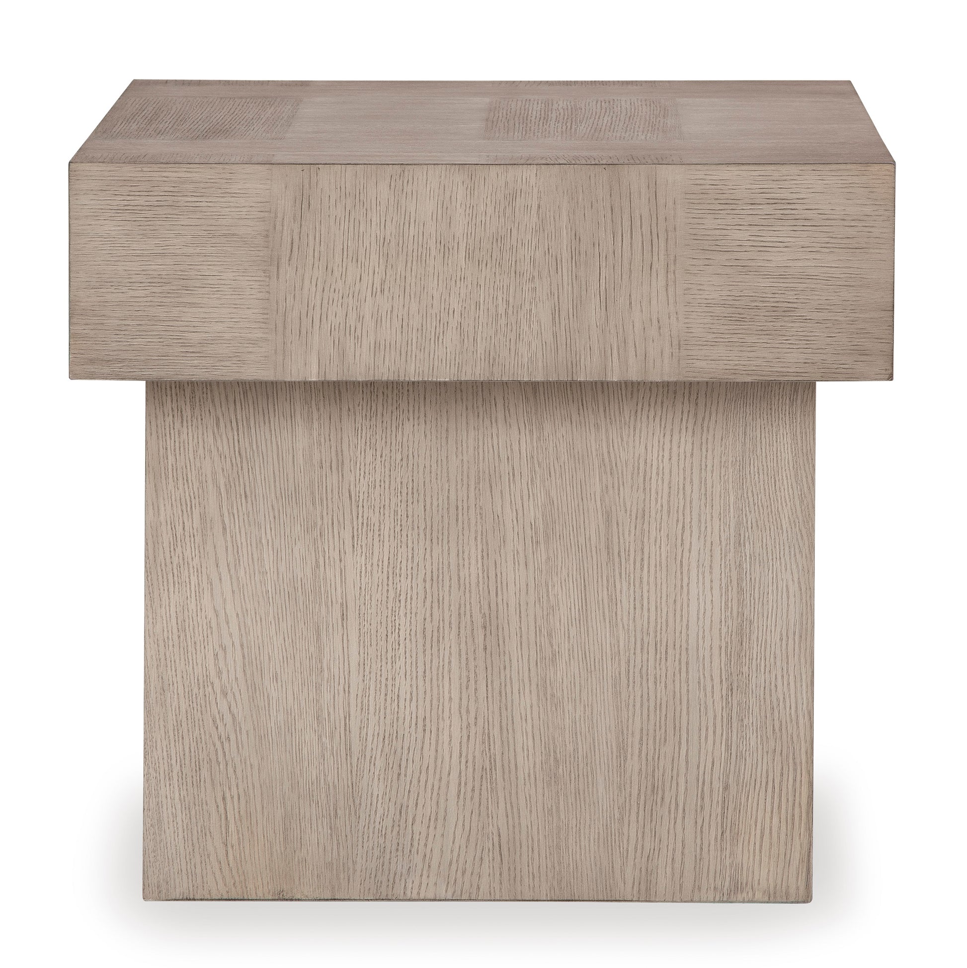 • The striking Jorlaina end table looks equally at home in traditional or modern settings. A textural light gray finish offers a casual modern look, while the double plinth base exudes a classically contemporary sensibility. With its timeless design, this table is just the spot to display photos or decor accents.